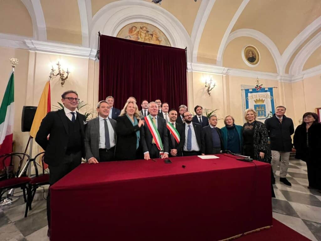 C’è la firma che suggella la Fondazione “Agrigento Capitale della cultura”. La costituzione questa mattina, nel foyer “Pippo Montalbano”, del teatro Pirandello, davanti al notaio, Giuseppe Fanara, con atto pubblico, con il compito di gestire gli eventi per una sfida che dovrebbe produrre ricadute positive sul territorio per diversi anni. A guidare la Fondazione, con l’incarico di presidente, sarà Giacomo Minio, già direttore provinciale di Confindustria e docente di economia all’università di Palermo, designato dal consorzio universitario Empedocle.