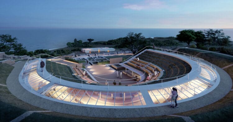 La struttura proposta è stata descritta come un mix armonioso tra l’antico e il moderno, capace di proteggere la cavea dagli agenti atmosferici senza rinunciare alla fruizione visiva e all’accessibilità. Ma il colpo di genio? La copertura assume la forma di una cavea verde, totalmente reversibile, che si fonde con il paesaggio circostante. Un tocco di classe che si ispira all’idea dei viaggiatori del Settecento e che aggiunge un po’ di glamour al teatro ellenistico.