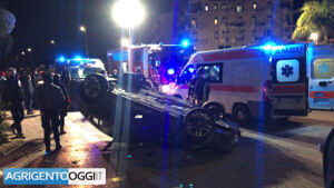 E’ di due feriti, il bilancio di un incidente stradale avvenuto, lungo il viale Leonardo Sciascia, al Villaggio Mosè. A scontrarsi una Golf Volkswagen, e una Bmw. Quest’ultima auto dopo il violento impatto si è ribaltata.