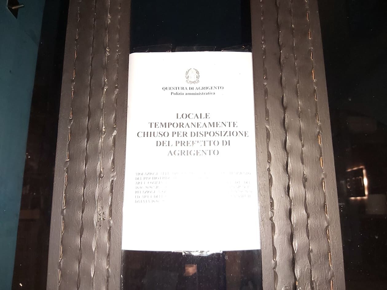 Il personale della sezione Pasi della Questura di Agrigento, con provvedimenti firmati dal prefetto di Agrigento Maria Rita Cocciufa, e su disposizione del questore Rosa Maria Iraci, ha notificato la chiusura per 5 giorni a tre noti locali della “movida” di via Pirandello e piazza San Francesco, nel centro di Agrigento.