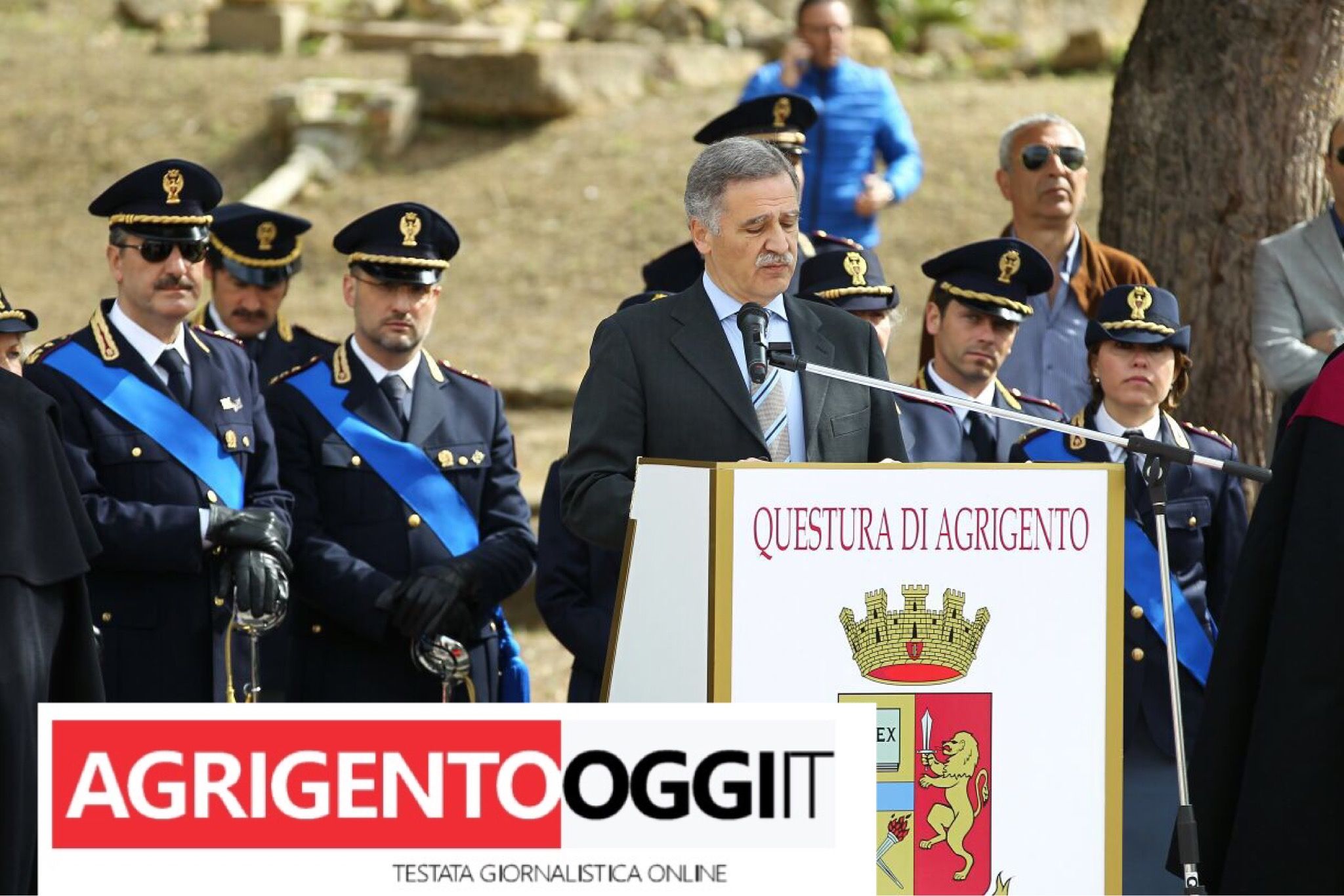 Il Prefetto di Agrigento Nicola Diomede e il Questore Mario Finocchiaro hanno aperto la cerimonia celebrativa del 165° Anniversario della Fondazione della Polizia di Stato, a 70 anni dalla fondazione della Polizia Stradale e a 110 anni dalla fondazione della Polizia Ferroviaria. Il Questore di Agrigento ha dichiarato: “la presenza mafiosa nel nostro territorio ha avuto dei colpi notevoli, anche quest’anno vi sono state diverse operazioni, non solo svolte da noi, ma anche da altre forze dell’ordine, – continua Finocchiaro – è chiaro che rispetto agli anni passati c’è una diminuzione delle forze di organizzazioni mafiose, ma questo non vuol dire che si deve abbassare la guardia, manteniamo sempre alta l’attenzione e le indagini sono sempre in corso.”