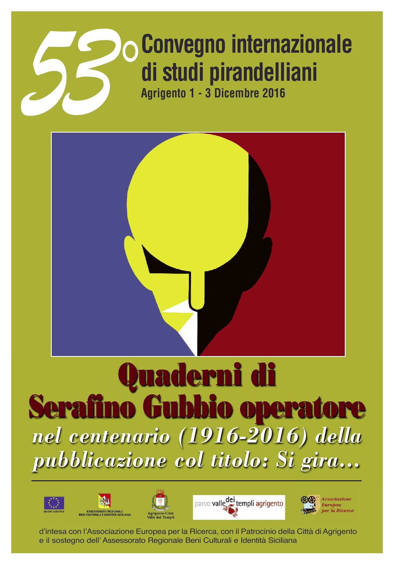 Si apre domani il 53° Convegno Internazionale di Studi Pirandelliani, dal titolo “Quaderni di Serafino Gubbio operatore nel centenario (1916-2016) della pubblicazione col titolo: Si gira…”, organizzato dal Centro Nazionale Studi Pirandelliani, presieduto da Stefano Milioto, e fondato dal Professore Enzo Lauretta.