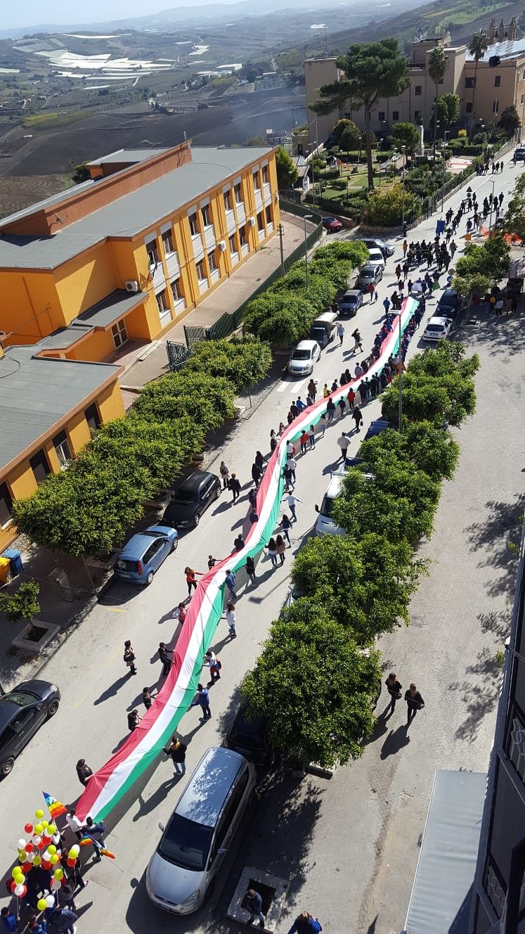 Successivamente, dalla scuola elementare San Giovanni Giovanni Bosco di Via Dante, si è mosso un corteo con un lungo tricolore al seguito che è arrivato in Piazza Roma all’interno della villa comunale, dove il Sindaco Maria Grazia Brandara, insieme all’amministrazione comunale, ha deposto una corona di alloro in ricordo dei caduti in guerra sotto il monumento sul quale è scolpita la frase “Naro, ai suoi eroi”.