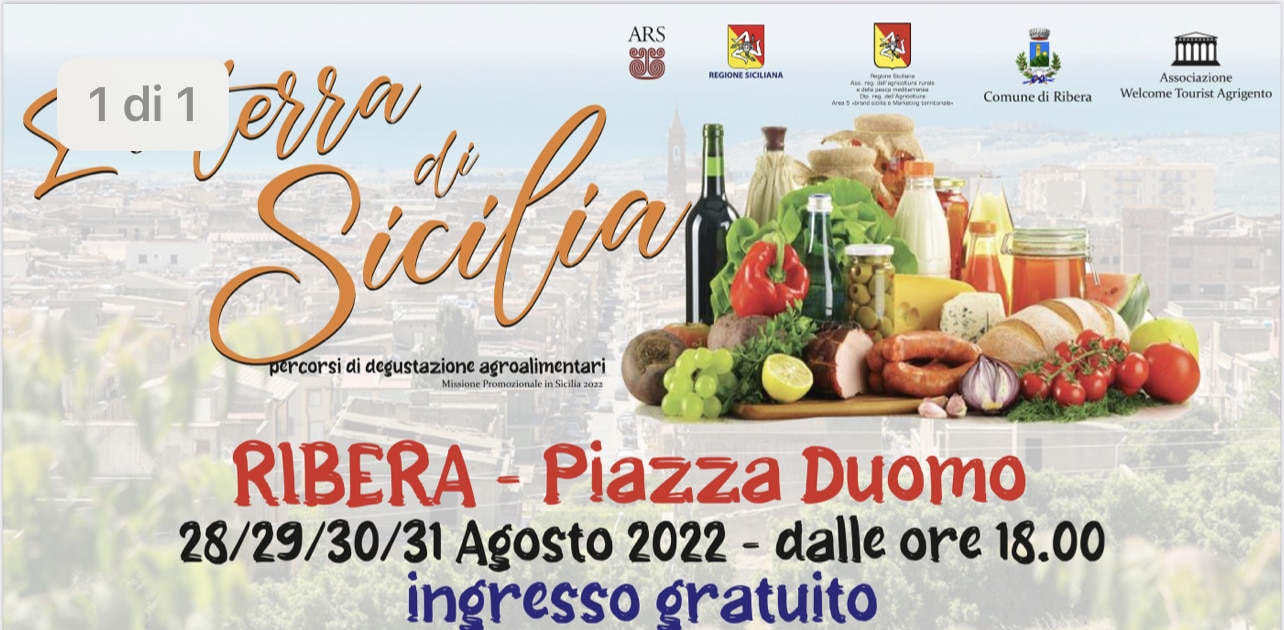 La terra di Sicilia, percorsi di degustazione alimentare. I prossimi 28,29,30 e 31 agosto, Ribera protagonista di un progetto che mira ad individuare nuove strade per gli operatori dei vari settori presenti dell’intera regione Sicilia al fine di confrontarsi allacciare nuovi rapporti d’intesa economici e commerciali e di interscambio.
