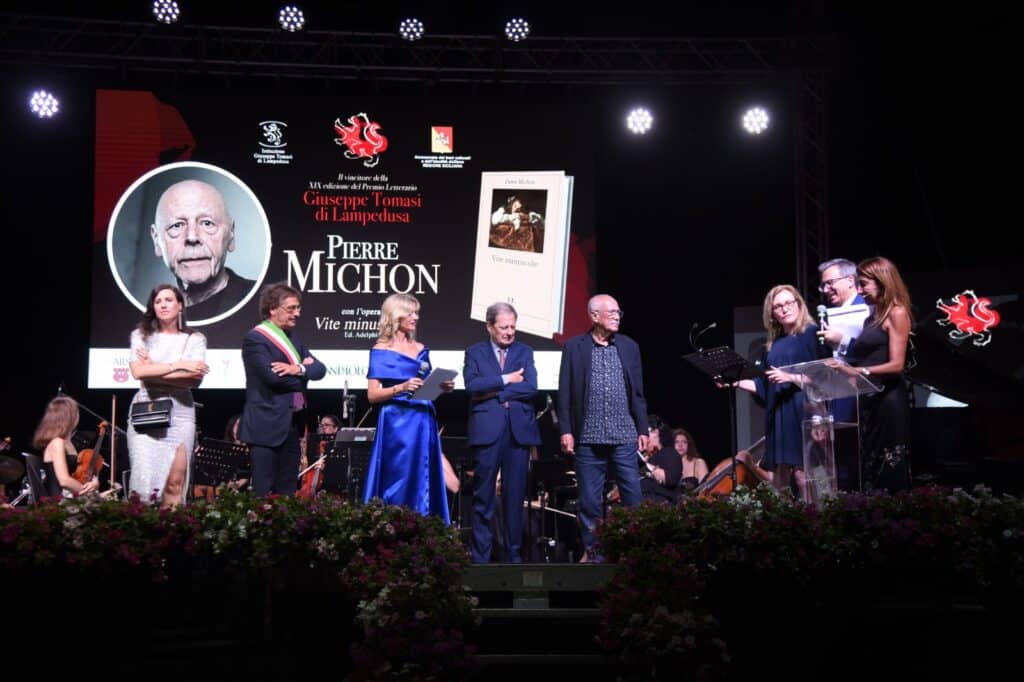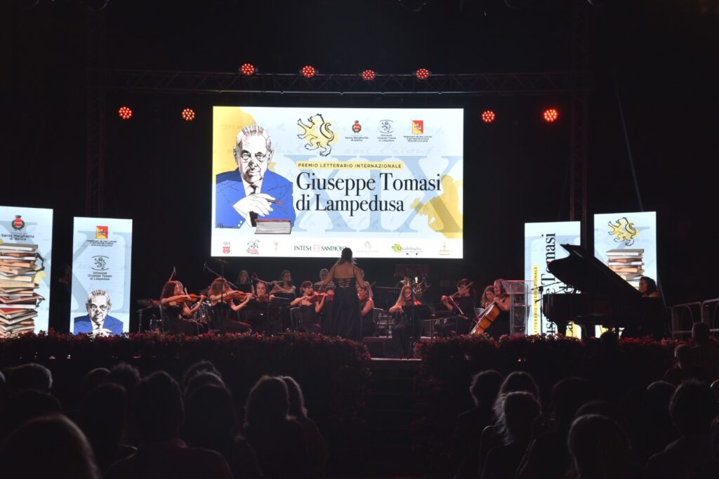 La XIX edizione del Premio Letterario Internazionale “Giuseppe Tomasi di Lampedusa” sarà ricordata come una tra le più emozionanti ed eleganti. L’emozione l’ha trasmessa il vincitore del premio, Pierre Michon, che, pur non potendo prendere parte di persona alla cerimonia per gravi motivi di salute, ancorchéattaccato ad un respiratore artificiale, ha voluto, comunque, inviare un video messaggio che ha toccato il cuore di tutti gli spettatori. Lo scrittore francese, premiato per il suo romanzo “Vite minuscole”, ha mostrato il suo grande attaccamento al Gattopardo ed al suo autore pubblicando sul Corriere della Sera una lettera immaginaria indirizzata al Principe di Salinas e a Giuseppe Tomasi di Lampedusa. Per suo conto è arrivata a Santa Margherita di Belice la sua compagna, Elodie Chamblas, che ha ritirato il Premio Letterario Internazionale “Giuseppe Tomasi di Lampedusa, leggendo il brano letterario dedicato da Michon alla città di Santa Margherita di Belice. L’eleganza è stata, invece, assicurata dalle musiche suonate dal vivo dalla Women Orchestra, un’orchestra sinfonica composta tutta da donne siciliane e diretta da Alessandra Pipitone, che si è ben integrata con gli interventi degli attori Lucia Sardo e Alessio Vassallo. Questi ultimi due sono riusciti a creare una grande atmosfera interpretando magistralmente alcuni testi di Giuseppe Tomasi di Lampedusa, appositamente rielaborati dal Prof. Matteo Raimondi, che ha curato anche il coordinamento dell’evento. Di grande effetto le scelte di regia effettuate da Nino Graziano Luca, che ha anche condotto la serata assieme a Licia Raimondi. La motivazione del Premio è stata letta dal Presidente della Commissione, Salvatore Silvano Nigro. Presenti anche gli altri componenti della commissione: Salvatore Ferlita, Mercedes Monmany e Giorgio Ficara. Del “Paesaggio del Gattopardo in un viaggio tra mente e cuore” ha parlato il Prof. Giuseppe Barbera che ha posto la necessità di riporre maggiore attenzione al giardino storico di palazzo Filangeri di Cutò, tra i più significativi in Sicilia. Sul palco anche l’esibizione del giovane pianista Emmanuele Marchese, che ha mostrato tutto il suo virtuosismo in un difficile brano di Franz Litz, e le dame e i cavalieri della Compagnia Nazionale di Danza Storica che hanno rievocato le danze del Gattopardo. Significativa la presenza del Sindaco di Agrigento, Francesco Miccichè e del Direttore Generale della Fondazione Agrigento Capitale della Cultura 2025. Soddisfatti il Sindaco di Santa Margherita di Belice, Gaspare Viola, che si è già proiettato verso la prossima edizione del Premio che sarà la ventesima, e l’Assessore Comunale al Turismo, Deborah Ciaccio. Circa duemila gli spettatori presenti, di cui ben 1600 hanno avuto la possibilità di seguire lo spettacolo in poltrona. Per l’occasione è stato predisposto un piano di sicurezza straordinario che ha consentito che tutto si svolgesse senza alcun problema. Alla compagna dello scrittore sono andati anche un dolce a forma di Gattopardo, consegnato dal maestro pasticciere Nicola Fiasconaro, ed una magnum di Donnafugata, consegnata da Josè Rallo.
