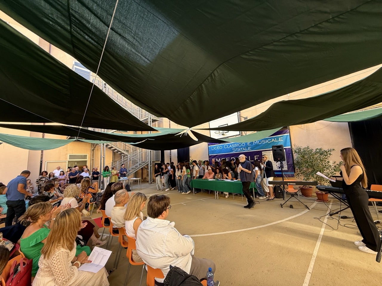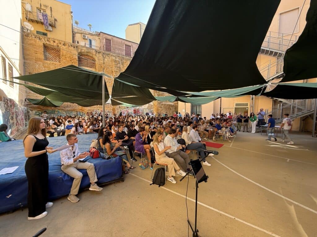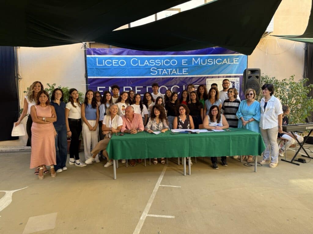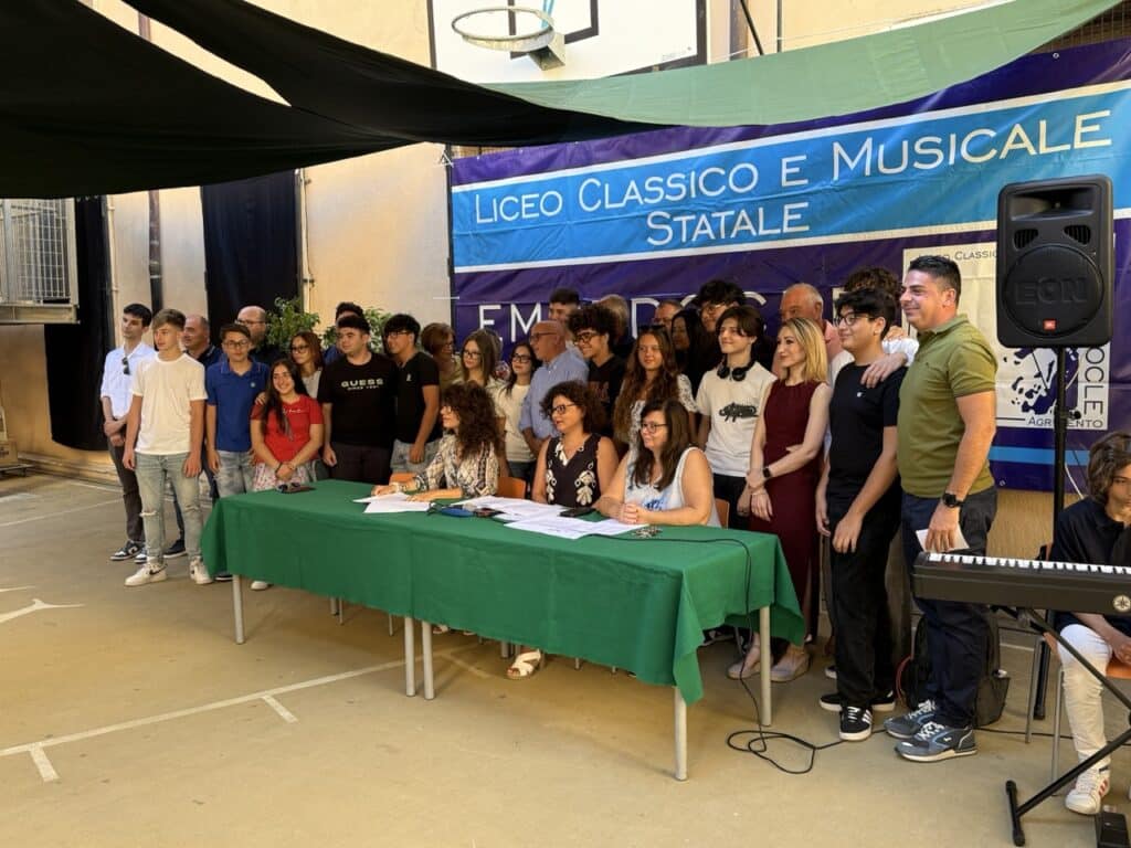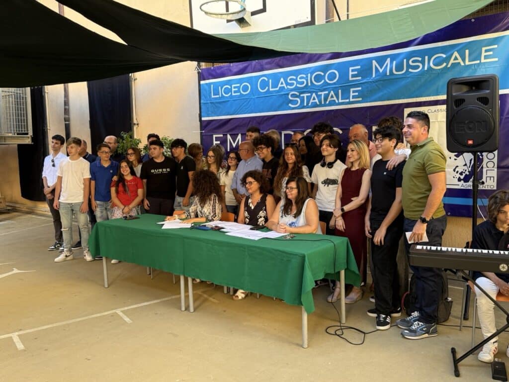 Ad Agrigento, il Liceo Classico e Musicale “Empedocle” ha inaugurato ufficialmente l’anno scolastico 2025/2026 con la tradizionale cerimonia di accoglienza, un momento simbolico che segna il passaggio degli studenti dal biennio al triennio e l’ingresso dei nuovi iscritti. L’evento si è svolto nella palestra scoperta della sede centrale di via Empedocle, ombreggiata da suggestive vele verdi, offrendo un’atmosfera speciale per salutare i ragazzi. La giornata è stata organizzata in due turni distinti: al mattino i ragazzi del terzo anno hanno incontrato i rispettivi Consigli di Classe, mentre a seguire gli studenti delle prime classi hanno vissuto il loro primo contatto ufficiale con docenti e compagni.