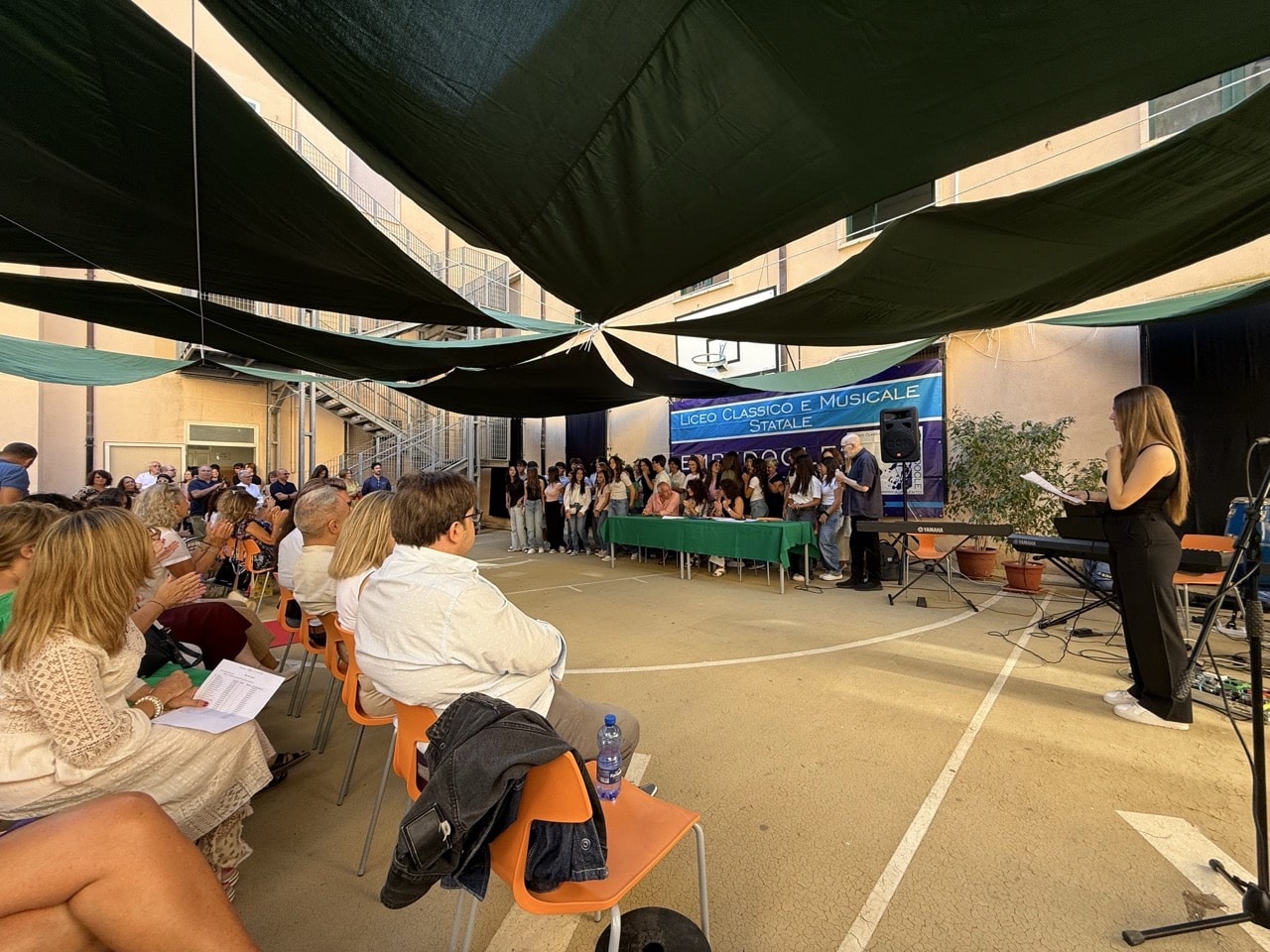 A fare da colonna sonora all’avvio dell’anno, l’esibizione dei ragazzi del musicale con “Accendi un diavolo e me”, scelta non casuale per trasmettere energia e entusiasmo. Ma dietro le note e i sorrisi emergono anche criticità legate alle sedi distaccate del liceo musicale, che da decenni si trovano in strutture provvisorie: mancano aule insonorizzate, spazi adeguati per i laboratori e palestre per l’attività sportiva, condizioni che rendono difficile garantire sicurezza e qualità delle lezioni. La dirigente Marika Helga Gatto non ha nascosto la sua preoccupazione e ha lanciato un appello alle istituzioni, sottolineando la necessità di interventi concreti per garantire agli studenti ambienti dignitosi e funzionali, adeguati alla loro crescita e formazione.