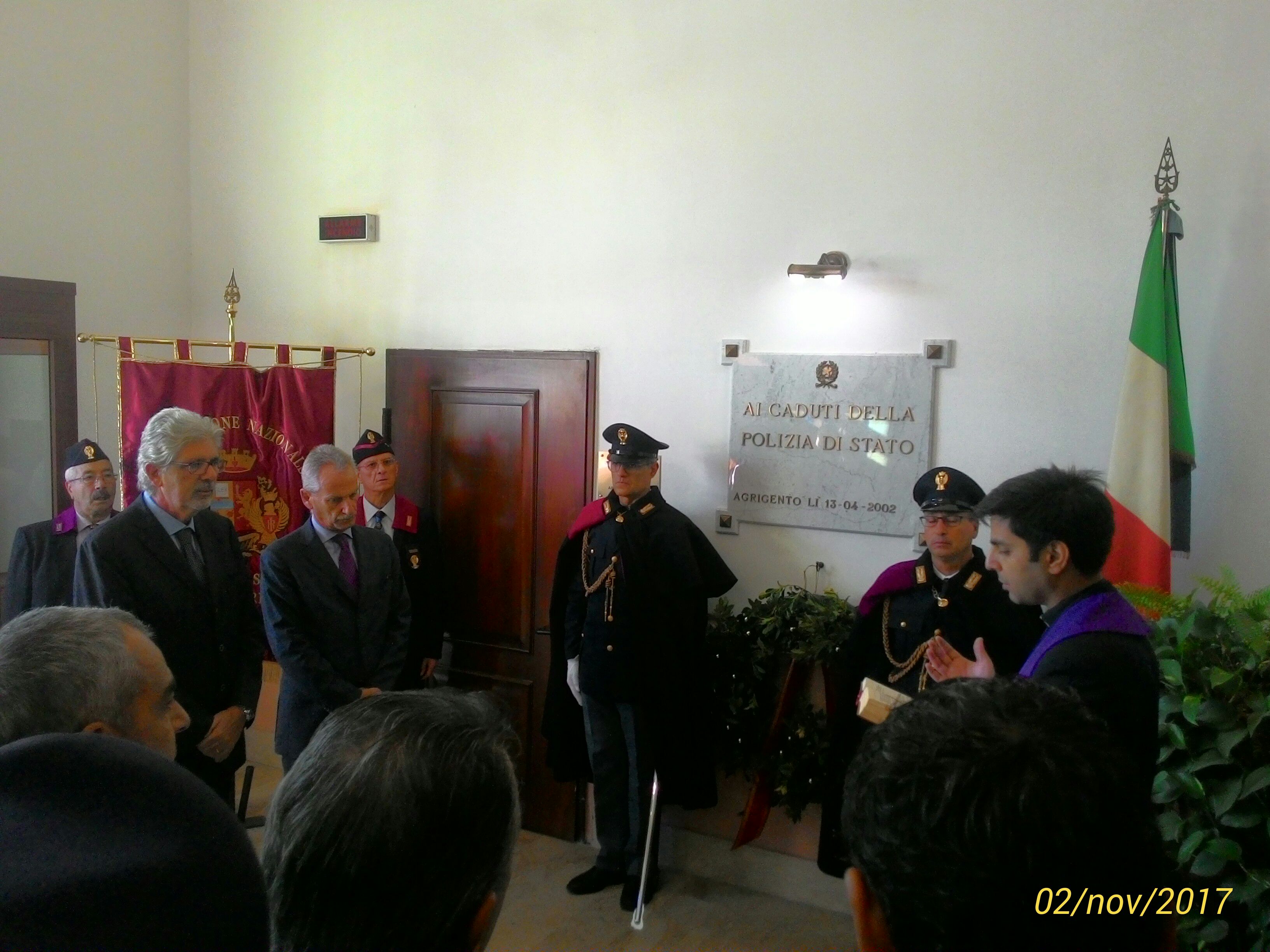 Nella mattinata odierna, in occasione della ricorrenza della commemorazione dei defunti, presso la Questura di Agrigento, alla presenza del Prefetto, Nicola DIOMEDE e del Questore Maurizio AURIEMMA, ha avuto luogo un momento celebrativo di preghiera in ricordo dei poliziotti che hanno perso la vita in servizio nell’adempimento del dovere e, più in generale, di tutti coloro che hanno sacrificato la loro esistenza in nome degli stessi altissimi ideali di legalità. Alla cerimonia erano presenti i poliziotti ed i dipendenti dell’Amministrazione Civile dell’Interno della Questura e dei Commissariati di P.S., i rappresentanti delle Organizzazioni Sindacali della Polizia di Stato e dell’Amministrazione Civile dell’Interno, nonché una delegazione dell’Associazione Nazionale della Polizia di Stato ANPS – sezione di Agrigento. Nel corso della cerimonia, dopo la deposizione di una corona di alloro da parte di due poliziotti in Alta Uniforme ai piedi della lapide posta all’ingresso della Questura ed intitolata ai Caduti della Polizia di Stato, ha avuto luogo la preghiera e la benedizione officiati dal Cappellano della Polizia di Stato, don Antonio LA LICATA. L’occasione è stata propizia per presentare ufficialmente don Antonio, nel suo incarico di Cappellano della Polizia di Stato. Il prelato, dopo aver conseguito il Baccalaureato in Sacra Teologia presso l’istituto teologico “San Gregorio Agrigentino”, è stato ordinato sacerdote nel mese di maggio 2013; ha ricoperto l’incarico di vicario parrocchiale della Parrocchia San Lorenzo di Agrigento fino al mese di agosto 2015, quando ha ricevuto la nomina di Parroco della medesima Parrocchia.