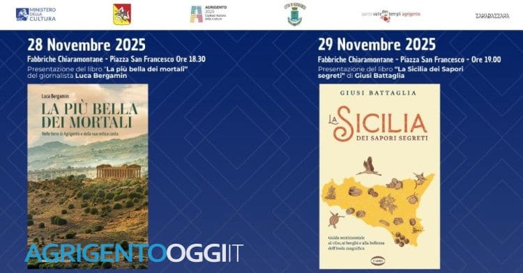 Domani, 28 novembre e dopodomani, 29 novembre, le Fabbriche Chiaramontane di piazza San Francesco ad Agrigento ospiteranno le presentazioni di due libri diversi ma intimamente legati nel contesto dell’iniziativa “Vivere Diodoros – Nutrire i territori”, che rientra nei 44 progetti del dossier di candidatura di Agrigento Capitale Italiana della Cultura 2025, è organizzata dalla società Zarabbazzara per la Fondazione Agrigento 2025 in collaborazione con il Parco Archeologico e Paesaggistico della Valle dei Templi. Il primo appuntamento, il 28 novembre alle 18.30 è con il giornalista e autore Luca Bergamin, firma autorevole di alcuni principali quotidiani italiani e con il suo “La più bella dei mortali. Nelle terre di Agrigento e della sua mitica costa”, Edicicloeditore.