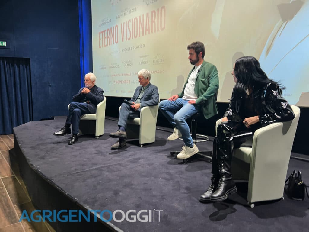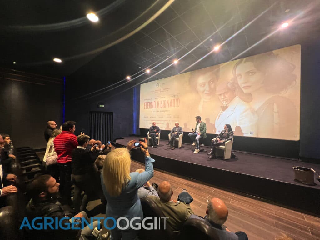 Agrigento si trasforma in set cinematografico, e Michele Placido annuncia un ritorno. “Ad Agrigento si può fare cinema, e torneremo qui per un anno intero a girare un altro film sulla storia di Rosario Livatino”, ha dichiarato il regista, pochi istanti fa, a margine della prima nazionale di Eterno Visionario, proiettato in un gremito Cinema Concordia. Placido, dopo aver incontrato la stampa e salutato il pubblico, ha espresso gratitudine alla città e si è complimentato con i figuranti locali, che hanno partecipato alle riprese svoltesi al Teatro Pirandello, sulla spiaggia di Realmonte e nella suggestiva cornice della Valle dei Templi.