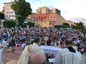 Tantissimi fedeli hanno partecipato alla processione del Corpus Domini ad Agrigento, domenica 11 giugno. Prima la celebrazione eucaristica in Cattedrale e, poi, la processione, come da tradizione. La Santa Messa è stata presieduta dall’arcivescovo Alessandro Damiano e concelebrata dai parroci della città di Agrigento. La processione è partita dalla Cattedrale ed ha attraversato le vie Duomo, Matteotti, Bac Bac, Atenea, piazza Aldo Moro, per giungere in piazza Stazione per la benedizione finale. Il vescovo ha sorretto il santissimo sacramento percorrendo a piedi le vie cittadine. La festa del Corpus Domini celebra la vicinanza di Gesù agli uomini, il momento più alto e significativo della Sua esperienza umana.La solennità del Corpus Domini è un momento importante a fine anno pastorale, in cui al centro della celebrazione è l’Eucaristia, fonte e culmine della vita della chiesa, attraverso la quale si sperimenta la comunione tra le varie realtà della diocesi, nella corale preghiera per i deboli, i poveri, per chiunque ha bisogno di amore e di consolazione, vicino o lontano, è il segno tangibile di una condivisione e partecipazione alla vita cittadina.