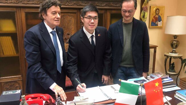 Insieme ad Alfredo Prado e a Meng Chong, per la firma della convenzione, presenti anche Beniamino Biondi, il vice direttore dell’Accademia Rosa Maria Corbo, i prof. Danylo Tkanko e Nicola Miceli, collaboratori dell’università cinese.