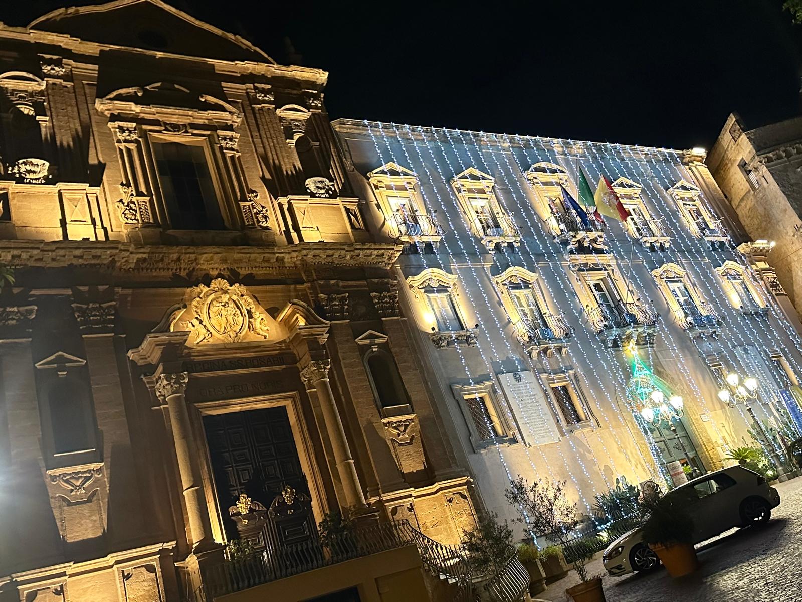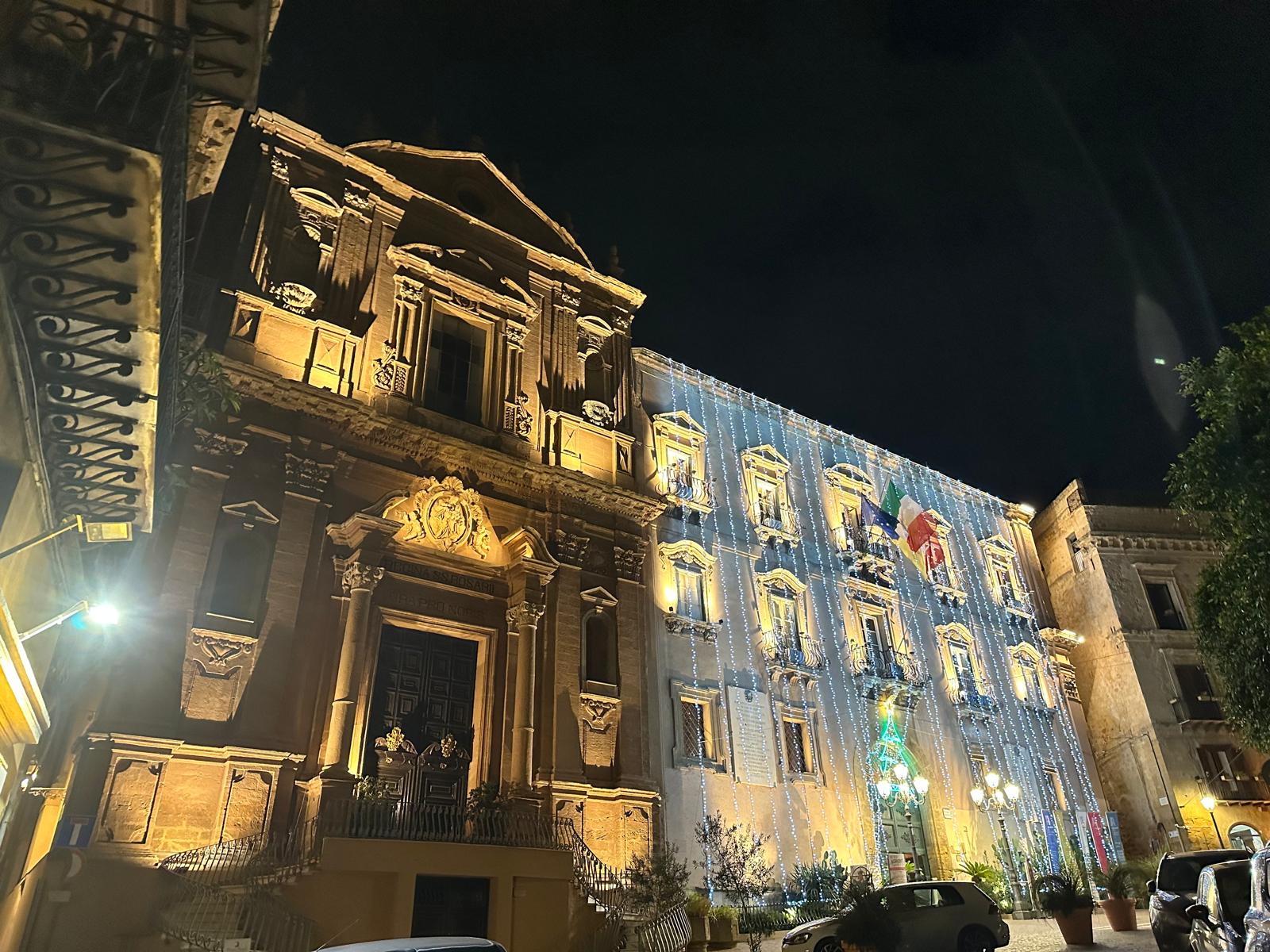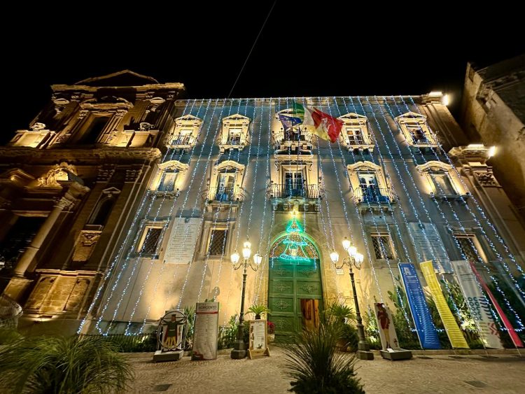 Il Palazzo di Città si è acceso questa sera con una cascata di luci che ne valorizza la facciata storica. Piazza Pirandello cambia volto e diventa uno dei punti più suggestivi del Natale agrigentino. Un primo, brillante assaggio dell’atmosfera delle feste.
