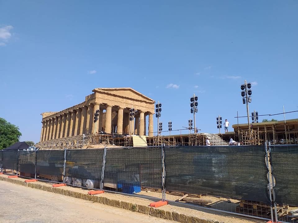 “Dal 15 di luglio al 15 settembre 2019 sarà possibile visitare il tempio della Concordia da una prospettiva insolita: utilizzando le strutture di protezione posizionate sul pavimento della cella e della peristasi, il tempio sarà visitabile all’interno”.