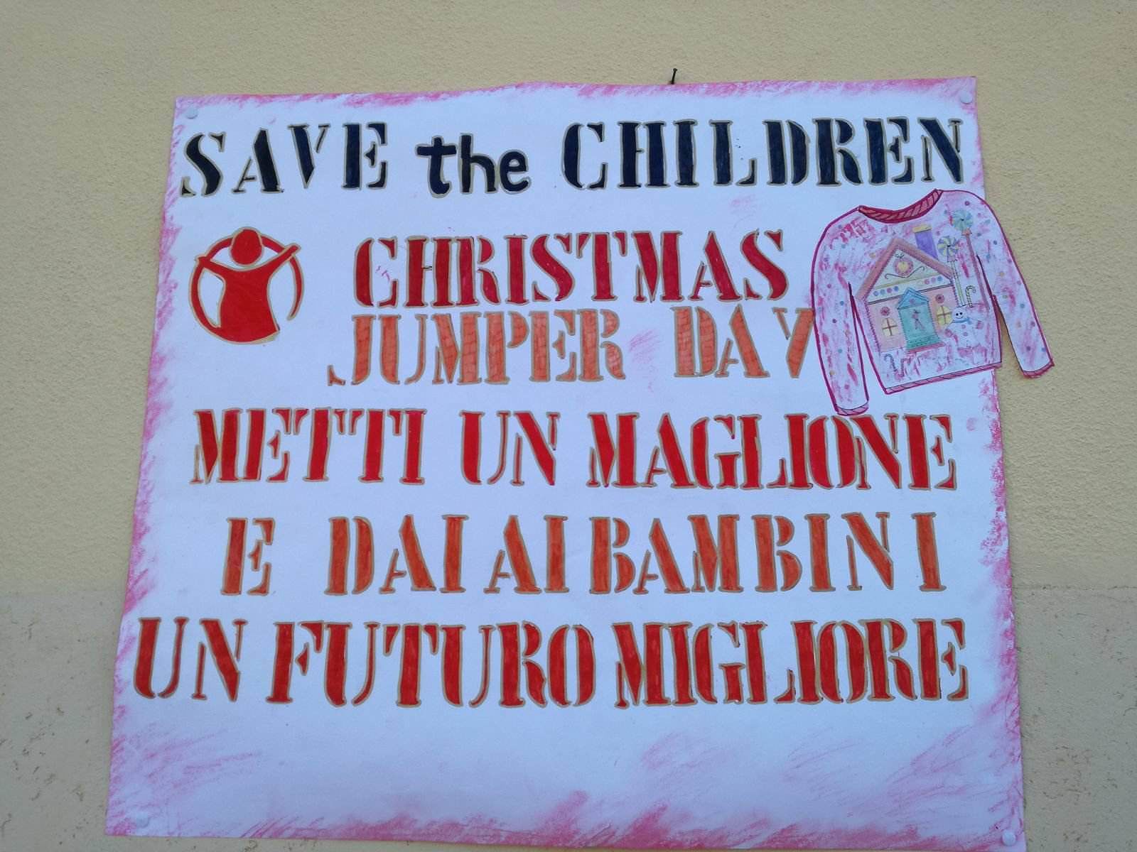 Non è mancata la solidarietà. Quest’anno, infatti, la scuola ha aderito al progetto di Save the Children vendendo dei biglietti il cui ricavato è andato all’Associazione. Ogni bambino, poi, ha indossato un maglioncino rosso con un simbolo natalizio proprio come recita lo slogan dell’iniziativa.