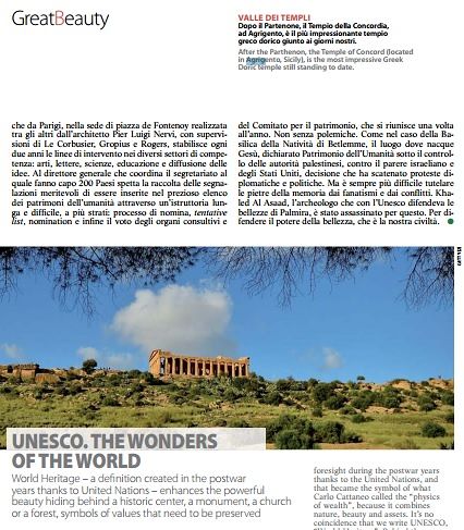 Una gran bella soddisfazione per Agrigento e gli agrigentini. Sul numero di febbraio di Ulysse, la rivista in distribuzione sui voli di Alitalia, la Città dei Templi trova spazio in ben due distinte trattazioni. Una prima volta con un articolo che parla dell’ormai vicino Mandorlo in Fiore ed a seguire all’interno di un pezzo riguardante i più interessanti beni Unesco.