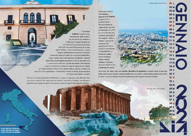Agrigento protagonista nel Calendario 2024 della DIA, con il Tempio della Concordia in primo piano. Il calendario sottolinea l’importanza della lotta alla criminalità organizzata e gli sforzi della DIA nel corso degli anni.