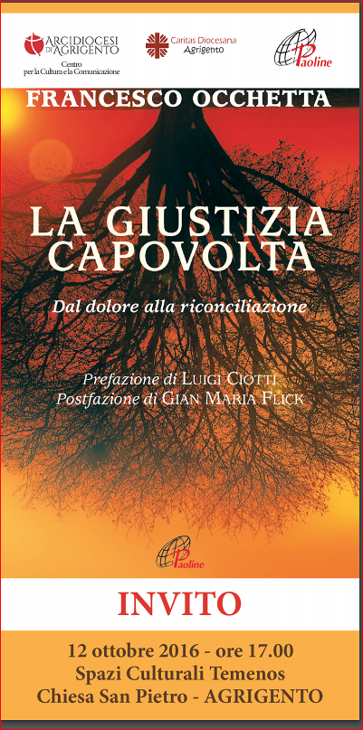 Mercoledì 12 ottobre 2016, alle ore 17.00, negli “Spazi Culturali Temenos” – Chiesa San Pietro (via Pirandello) di Agrigento sarà presentato il testo di Francesco Occhetta, “La Giustizia Capovolta” . Riflessioni provocazioni, confronti e testimonianze sul tema della giustizia riparativa.