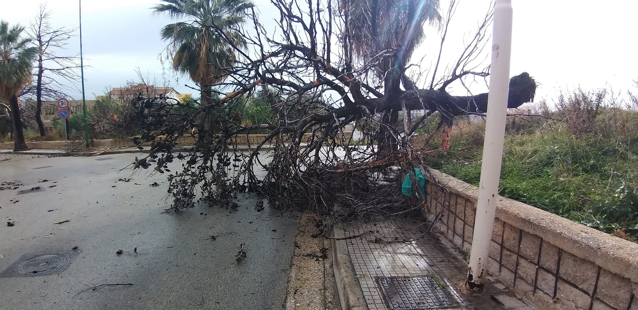 Agrigento, raffiche di vento e pioggia battente fanno strage di alberi e pali della luce