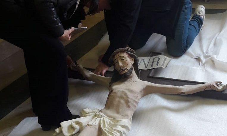 E’ stato recuperato questa mattina, per volere del sindaco Lillo Firetto, nell’ex chiesa delle Forche situata sulla Rupe Atenea, il prezioso crocifisso ligneo policromo del sedicesimo secolo, di proprietà del Comune e bisognoso di restauro.