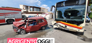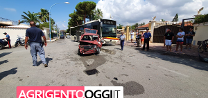 Gravissimo incidente lungo il viale dei Pini, a San Leone. A scontrarsi un autobus della Tua, e una Fiat Panda. L’impatto è stato terribile. La conducente, M.F., di 50 anni è stata estratta dalle lamiere contorte del mezzo dai Vigili del fuoco del Comando provinciale di Agrigento.