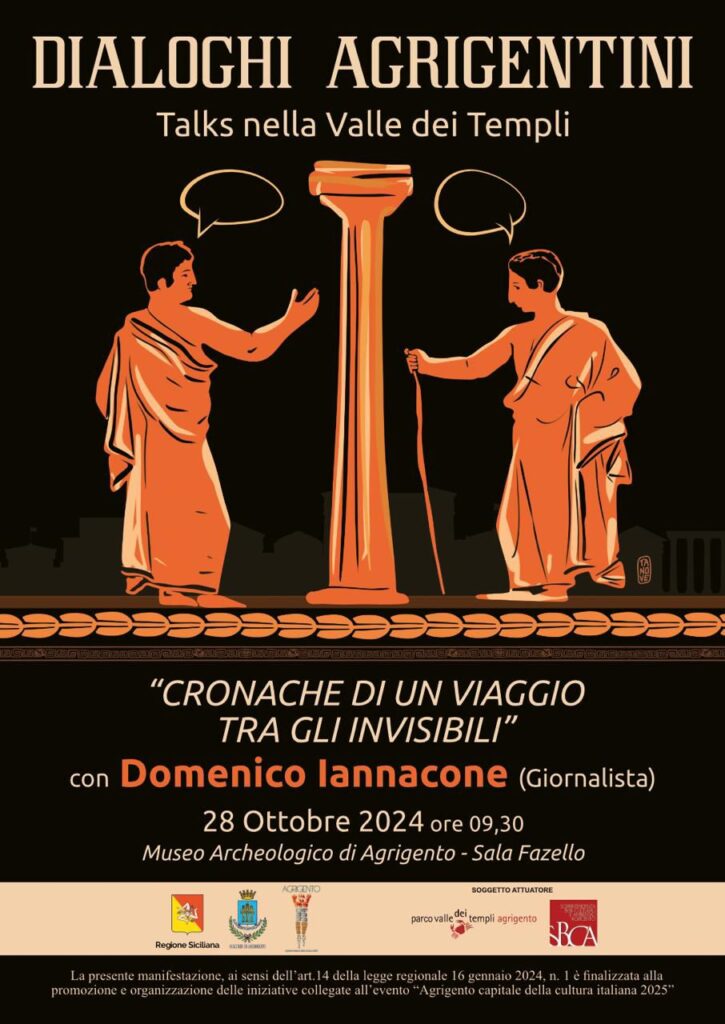 In particolare, il progetto “Dialoghi agrigentini” è curato dalla Soprintendenza, che ha selezionato una serie di personalità di spicco per affrontare tematiche di grande interesse culturale e sociale. Il primo talk, dal titolo “Cronache di un viaggio tra gli invisibili”, si terrà lunedì 28 ottobre alle ore 9.30 nella sala “Fazello” del museo archeologico Pietro Griffo, e avrà come ospite il giornalista Domenico Iannacone. Iannacone, noto per i suoi documentari di grande impatto sociale e le sue inchieste, è tra gli autori del programma Presadiretta. Ha vinto tre volte il premio “Ilaria Alpi” per il miglior reportage italiano lungo e due volte per il lavoro svolto con la trasmissione Rai “I dieci comandamenti”, che ha condotto dal 2013 al 2018. Dal 2023 è impegnato in una tournée teatrale con lo spettacolo “Che ci faccio qui in scena”. L’evento è gratuito e aperto al pubblico fino a esaurimento posti, offrendo così un’opportunità unica di dialogo e confronto su temi rilevanti della nostra contemporaneità.