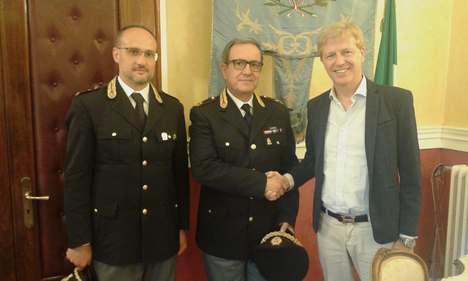Agrigento – Visita di cortesia, questa mattina in Comune, a Palazzo San Domenico, del dottor Pasquale Barreca neo comandante del Compartimento della Polizia Stradale della Sicilia Occidentale. Il dott. Barreca, accompagnato dal dott. Giuseppe Andrea Morreale, comandante provinciale della Polizia Stradale di Agrigento, ha voluto incontrare il sindaco della città dei templi, Lillo Firetto dopo il suo recente insediamento al comando della Polstrada della Sicilia Occidentale.