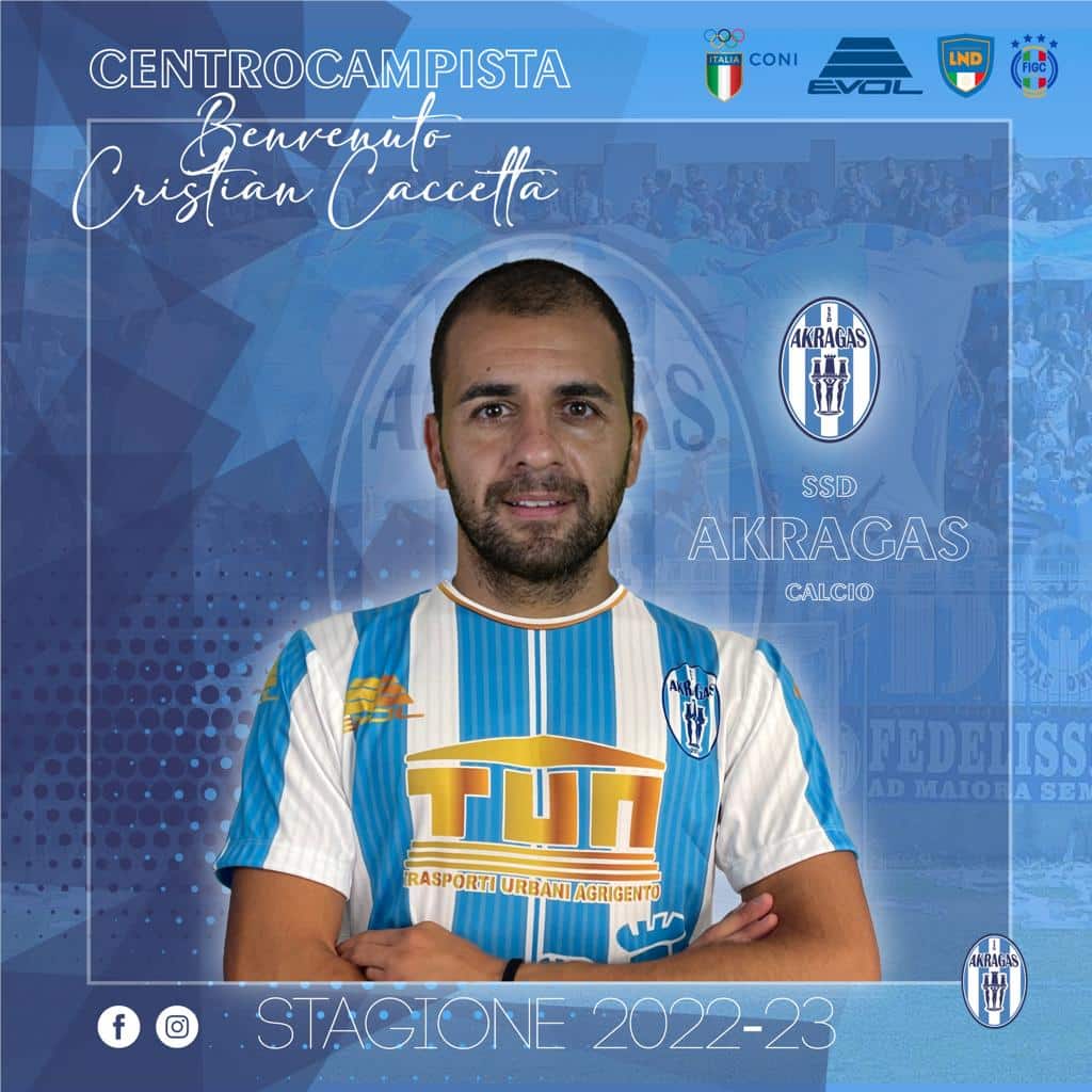 Sensazionale colpo di mercato dell’Akragas. Il Presidente Giuseppe Deni regala alla tifoseria e alla squadra allenata da Nicolò Terranova un vero top player per la categoria, il fortissimo ed esperto centrocampista Cristian Caccetta, classe 1986, nella scorsa stagione in forza al Licata nel campionato di Serie D. L’operazione di mercato è stata portata a compimento dal direttore sportivo Ernesto Russello.  Cristian Caccetta è un centrocampista completo, dotato di grande fisicità e visione di gioco.