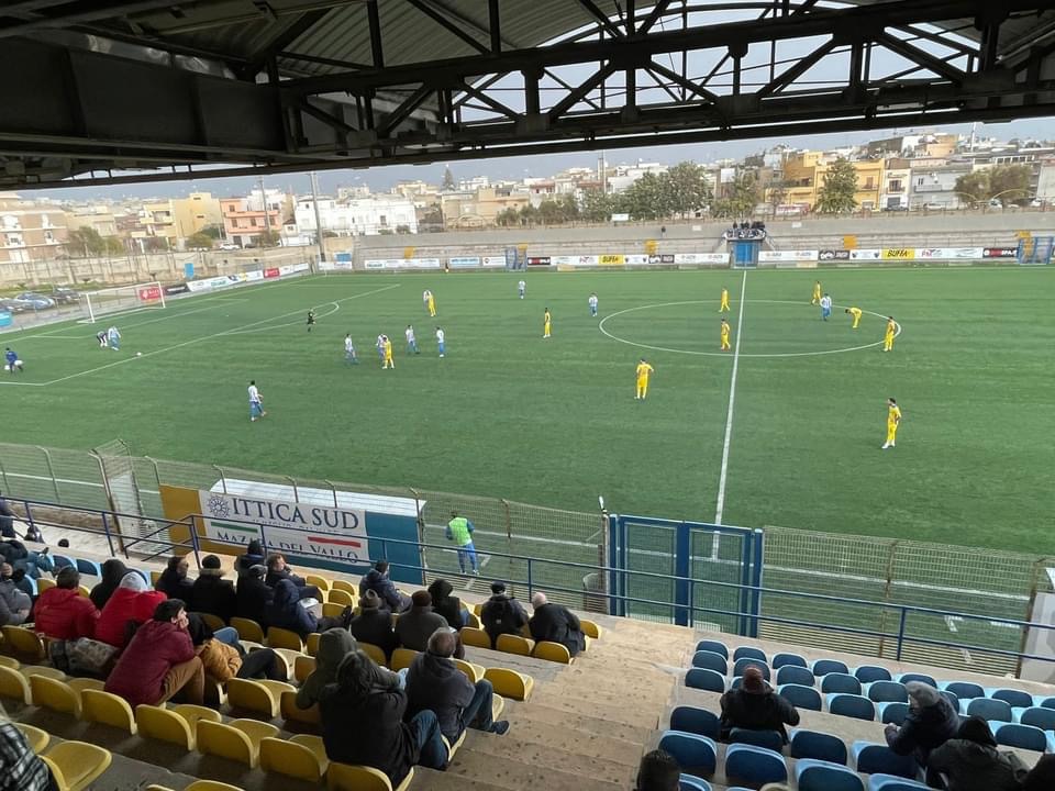 Vittoria meritata per l’Akragas contro un ostico e battagliero Mazara. I biancoazzurri espugnano il Nino Vaccaro con un gol per tempo: Pavisich su rigore al 42esimo e Finessi al 65esimo. La squadra di mister Terranova è stata perfetta in ogni zona del campo. Il Mazara non hai mai impensierito il portiere Harusha. Dopo un avvio equilibrato, gli akragantini sbloccano la gara con l’argentino Pavisich che si procura e trasforma il calcio di rigore. Poi nella ripresa, il Mazara alza il baricentro alla ricerca del pari ma senza creare pericolo alla porta avversaria. Al 20esimo sugli sviluppi di un calcio d’angolo il neo entrato Finessi di testa gonfia la rete. Poi non accade più nulla, l’Akragas controlla la partita e porta a casa i tre punti.
