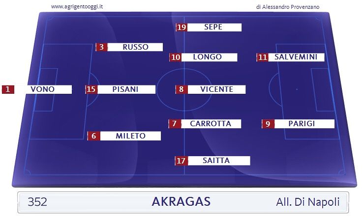 (3-5-2) Vono, Mileto, Pisani, Russo (capitano), Saitta, Carrotta, Vicente, Longo, Sepe, Parigi e Salvemini.
