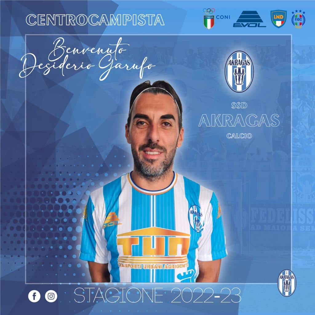 L’Akragas del Presidente Giuseppe Deni chiude con il “botto” la propria campagna di rafforzamento, in vista dell’inizio del campionato di Eccellenza, in programma domenica 4 settembre contro la Leonfortese, alle ore 15:30, allo stadio Esseneto di Agrigento. Il Club Akragantino ha ingaggiato l’esperto esterno destro Desiderio Garufo, classe 1987, originario di Grotte, la scorsa stagione al Canicattì con il quale ha conquistato la promozione in Serie D. Garufo vanta tre promozioni dalla C alla B con le maglie di Parma, Trapani e Reggina. Per Desiderio Garufo si tratta di un ritorno all’Akragas, società che lo ha fatto crescere e lanciato nel calcio professionistico. Il terzino agrigentino ha iniziato la sua carriera con la maglia dell’Akragas del Presidente Giuseppe Deni nella stagione 2005-2006. Poi le esperienze con le maglie di Alcamo, Nissa, Sangiovamnese, Taranto, Nocerina, Trapani, Novara, Catania, Parma, Reggina, Catanzaro e Canicattì. Garufo, in foto con il Direttore generale Giancarlo Rosato, vanta oltre 300 presenze tra i professionisti e una ventina di gol. È un esterno solido che abbina forza fisica e resistenza ad una buona disciplina sotto il profilo tattico in entrambe le fasi di gioco. Esterno bivalente, sia basso che alto, va a completare un’organico di prim’ordine a disposizione di mister Nicolò Terranova.
