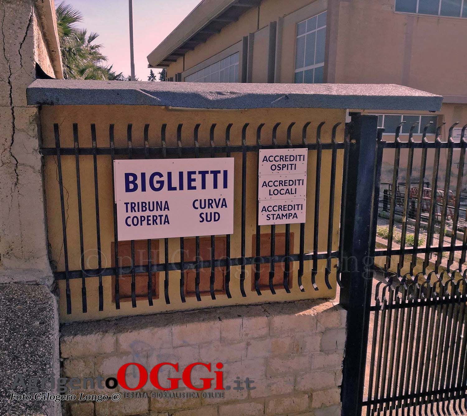 Sabato 25 febbraio i botteghini dello stadio Esseneto apriranno alle ore 11. Ve ne sono due: lato curva Nord dinanzi via Toniolo e lato curva Sud, nei pressi del palazzetto dello sport “Pippo Nicosia”