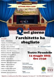 La Compagnia teatrale “Attori per caso” è nata nel 2011 all’interno del Lions Club Agrigento Host. E’ composta da soci che, spinti dal desiderio di operare nel territorio e aiutare chi si trova in difficoltà, sostenuti da una grande passione per il teatro e per la sua funzione sociale, hanno affrontato un percorso certo non facile portando avanti un progetto che dura ormai da dodici anni. Il loro impegno ha trovato riscontro nella presenza di un pubblico sempre più numeroso e consapevole delle finalità perseguite.
