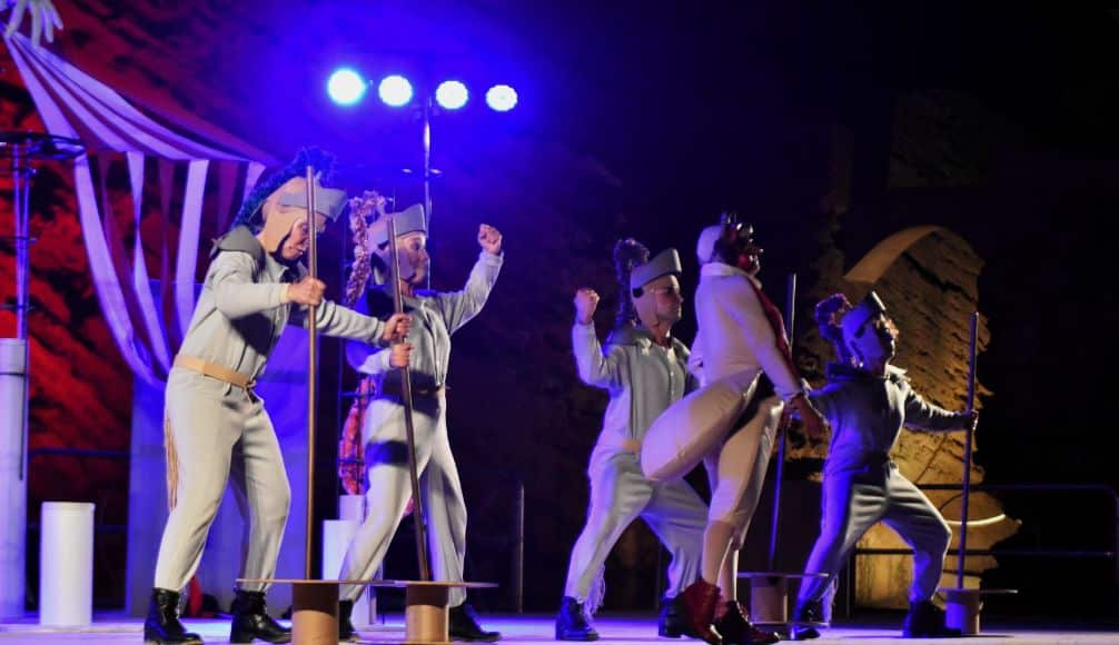 La critica di Aristofane alla società del suo tempo si può riportare tranquillamente ai giorni nostri, e “I Cavalieri” portati in scena da un cast di altissimo livello, guidato dall’ottima Cinzia Maccagnano, sono anche un forte messaggio per i popoli che alla fine, facendosi ingannare, lasciano che il potere passi nelle mani di faccendieri ed impostori, risultando di fatto complici del decadimento delle rispettive società. “Il teatro consente di dialogare, di confrontarci” ha detto a fine spettacolo la regista e attrice Cinzia Maccagnano “e di lasciarci con qualche sorriso, un po’ di leggerezza e anche di malinconia. E’ il ruolo del teatro, che consente sì di sorridere ma anche di riflettere”. Applausi, dunque, per i sette attori (Cinzia Maccagnano, Luna Marongiu, Raffaele Gangale, Cristina Putignano, Marta Cirello, Andrea Maiorca e Maria Chiara Pellitteri), poliedrici e travolgenti nella recitazione, nei canti e nelle danze.