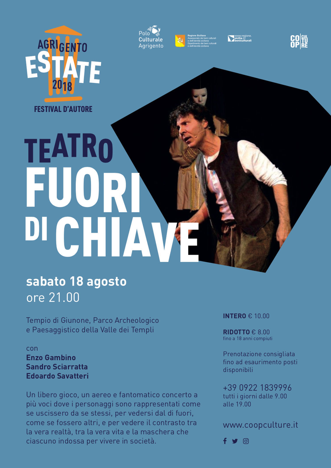 AGRIGENTO. E’ ancora Agrigento Estate, questa volta si presenta una pièce teatrale che è come un libero gioco, un aereo e fantomatico concerto a più voci dove i personaggi sono rappresentati come se uscissero da se stessi, per vedersi dal di fuori, come se fossero altri, e per vedere il contrasto tra la vera realtà, tra la vera vita e la maschera che
