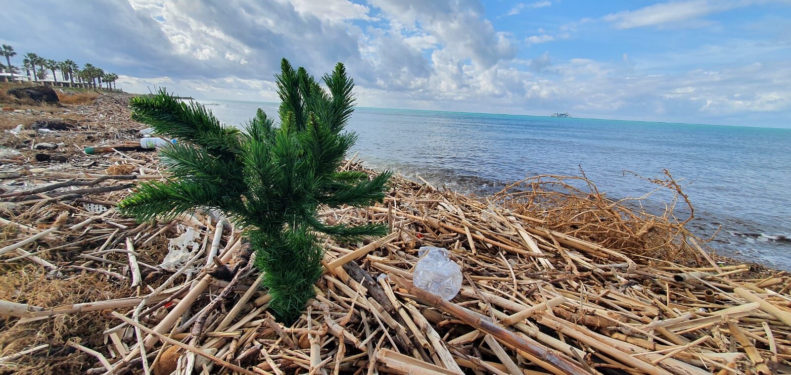 Singolare iniziativa nei pressi della foce del fiume Akragas. Nella spiaggia della Babbaluciara questa mattina tra i cumuli di detriti trasportati dalle fiume sono apparsi piccoli alberelli di Natale artificiali. Qualcuno ha forse pensato di dare così un tocco di festività alla tanto martoriata e sporca foce del fiume. Proprio in questi giorni, a causa delle forti piogge, sono ben visibili cumuli di sedimenti trasportati dal fiume, che si depositano in riva al mare.