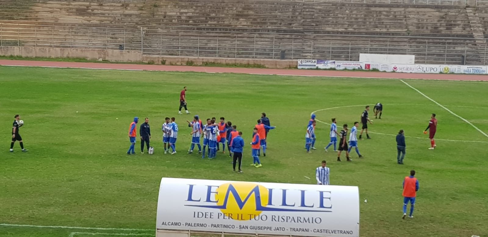 Una rete di Caronia ed una di Gambino bastano ai biancazzurri per avere ragione di un Alcamo che già dal finire di primo tempo ha giocato con superiorità numerica. La squadra di Mutolo cresce in rendimento e risultato e resta in corsa per raggiungere la testa della classifica.