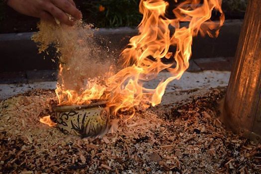 Un pomeriggio di dimostrazione della tecnica Raku dal vivo. La meraviglia del colore forgiato dal fuoco, una tecnica sorprendente che utilizza gli elementi della natura per creare una continuità visiva della materia modellata dall’artista.