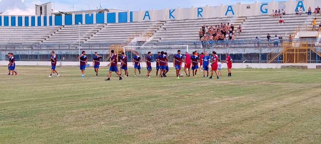 Buon test match per l’Akragas contro il Canicattì, allo stadio Esseneto di Agrigento. L’allenamento congiunto è terminato 2 a 3 per i biancorossi di mister Bonfatto, squadra neo promossa in Serie D e più avanti nella preparazione atletica rispetto all’Akragas. Il primo tempo è terminato 1 a zero per gli ospiti, grazie alla rete di Iezzi. I biancoazzurri di mister Terranova hanno sprecato un calcio di rigore con Pavisich, parata di Scuffia. Nella ripresa, sotto una pioggia battente, il Canicattì raddoppia con il centravanti Gueye. L’Akragas, ben messa in campo e reattiva, non ci sta e accorcia le distanze con Briones che con un bolide da fuori area gonfia la rete del Canicattì. Poi è Pavisich a riportare il punteggio in parità: l’attaccante argentino sfrutta a dovere un cross dalla destra di Baio e di potenza e precisione spedisce il pallone in fondo al sacco. Nel finale, il Canicattì su rigore trova la rete del successo: segna Pinto. Al test match hanno assistito circa 500 spettatori. Presenti in curva sud una trentina di ultrà biancazzurri. Sabato 13 luglio, l’Akragas svolgerà un allenamento congiunto con il Gela, allo stadio Esseneto di Agrigento con inizio alle ore 18.