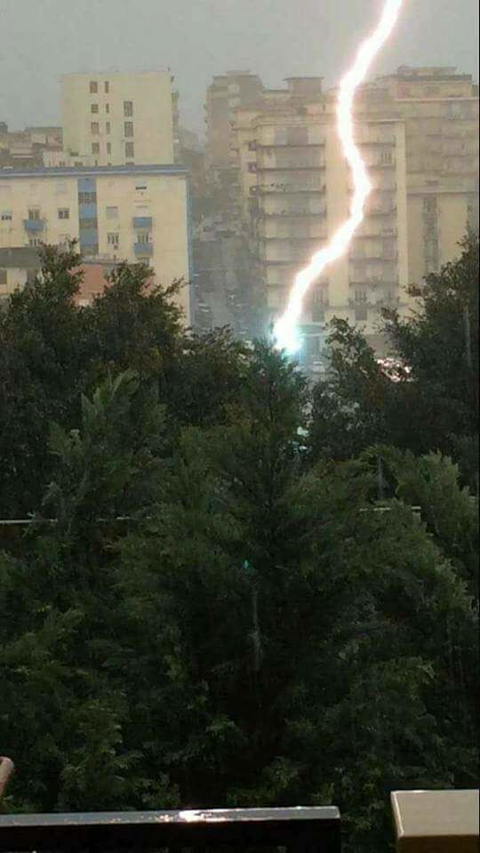 Piove ormai da 24 ore su tutta la Sicilia. La perturbazione che gia’ ieri aveva raggiunto la Sardegna mettendo in ginocchio in particolare Cagliari, colpita anche da una violenta tromba d’ aria,  nelle ultime ore sta interessando anche la Sicilia. Per il versante orientale, la Protezione Civile regionale, ha dichiarato lo stato di allerta massima  con codice rosso. Preallerta per il resto dell’ isola e anche per l’ agrigentino dove diversi sono i danni causati dalle intense piogge e dal vento di burrasca che ha provocato la caduta di un albero nella frazione balneare di San Leone. Diversi i danni anche nella zona di Sciacca dove molte strade sono allagate a causa dell’ intensa pioggia. E proprio durante il temporale un fulmine ha colpito il centro cittadino, come mostra la foto postata sui social proprio da un cittadino saccense.