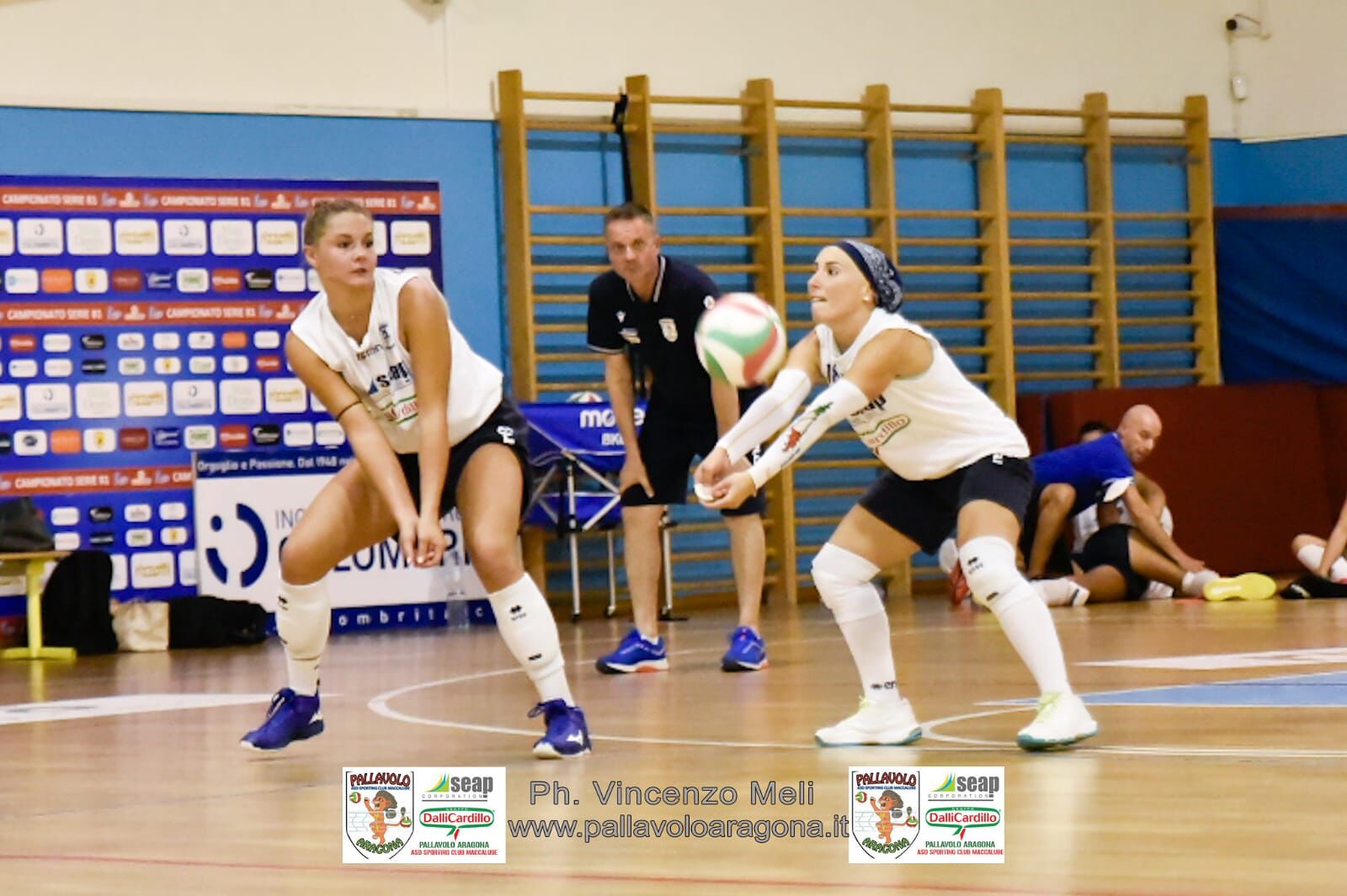 Il test match tra le due formazioni di Serie A2 è terminato 2-2. Questi i parziali: 25-21, 25-22, 25-27, 13-25. La Seap Dalli Cardillo Pallavolo Aragona è scesa inizialmente in campo con Caracuta in palleggio, Stival opposto, Cometti e Negri centrali, Moneta e Dzakovic martelli – ricevitori, Vittorio libero. Nel terzo e quarto set sono entrate Bisegna, Zonta, Zech e Casarotti. Assente per un lieve problema fisico il libero Fabiola Ruffa. Dopo aver perso i primi due parziali, la formazione biancazzurra è cresciuta in ogni fondamentale vincendo con merito i restanti set. Buona la prova delle giovani Negri, Zech, Casarotti, Stival e Bisegna. Esordio più che positivo per la montenegrina Dzakovic, miglior realizzatrice con 19 punti. Le veterane Caracuta, Moneta, Vittorio, Cometti e Zonta hanno confermato tutto il loro valore.