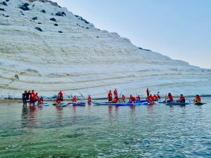 Ancora rosso sulla Scala dei Turchi, ma questa volta è uno spettacolo sportivo per valorizzare il territorio.  L’ora Blu 2022 appunto, spettacolo all’alba in sup alla Scala dei turchi che si è tenuto domenica all’alba. Sullo specchio di mare antistante la marna bianca più celebre di Sicilia si sono dati appuntamento neofiti e appassionati dello stand Up Paddle per vivere in esperienza in mare dal sapore unico.  “Partire con il buio per scoprire alle prime luci il faro naturale della marna della Scala dei Turchi è un esperienza che fa vivere il mare e apprezzare il territorio nel rispetto massimo dell’ambiente che non dimenticherete facilmente”. Ha commentato Marco Tyrolt – Presidente della AISSUT APS-SurfSchool PortoEmpedocle Dinanzi la celebre Scala dei turchi il team di SurfSchool PortoEmpedocle ha proposto anche uno spettacolo musicale in favore della pace. Prossimo appuntamento sabato 13 agosto. Info sui social della pagina.