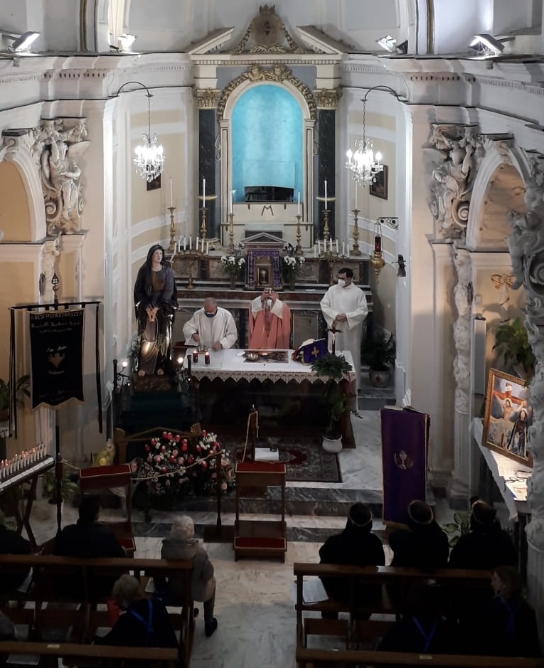 sotto il vescovo di Agrigento di quel periodo mons. Francesco Maria Rini (1676-1696). Ieri, 26 marzo, nel giorno dell’anniversario di fondazione dell’Arciconfraternita fondata 336 anni fa, come ogni anno, è stata celebrata una Santa messa per la confraternita e per tutti devoti e fedeli. Numerosi i confrati e le consorelle che hanno preso parte indossando il saio nero che, nonostante il passare dei secoli e l’alternarsi delle generazioni, continua ad essere il segno di una fede salda, di una devozione potente e duratura, di un costante servizio ai fratelli e alla comunità. La Santa messa è stata celebrata dal rettore don Lillo Maria Argento.