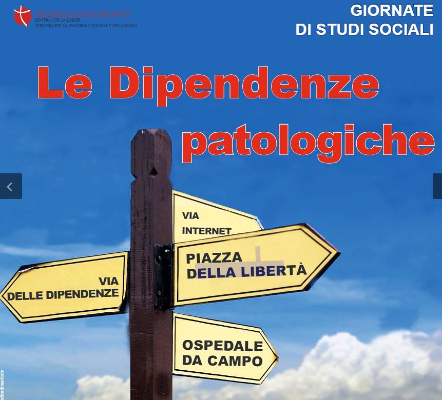 - Martedì 12 marzo 2019 ad Agrigento ore 18.00 – Oratorio Chiesa Sacro Cuore di Gesù “Dipendenza da sostanze: alcolismo e la dipendenza da droghe (leggere o pesanti)”. “La dipendenza dall’alcolismo” dott.ssa Maria Pia Antonelli – Operatore Comunità terapeutica “Terra Promessa” di Caltanissetta. “La dipendenza da droghe” dott. Calogero Ricevuto – Operatore Comunità terapeutica “Terra Promessa” di Caltanissetta.