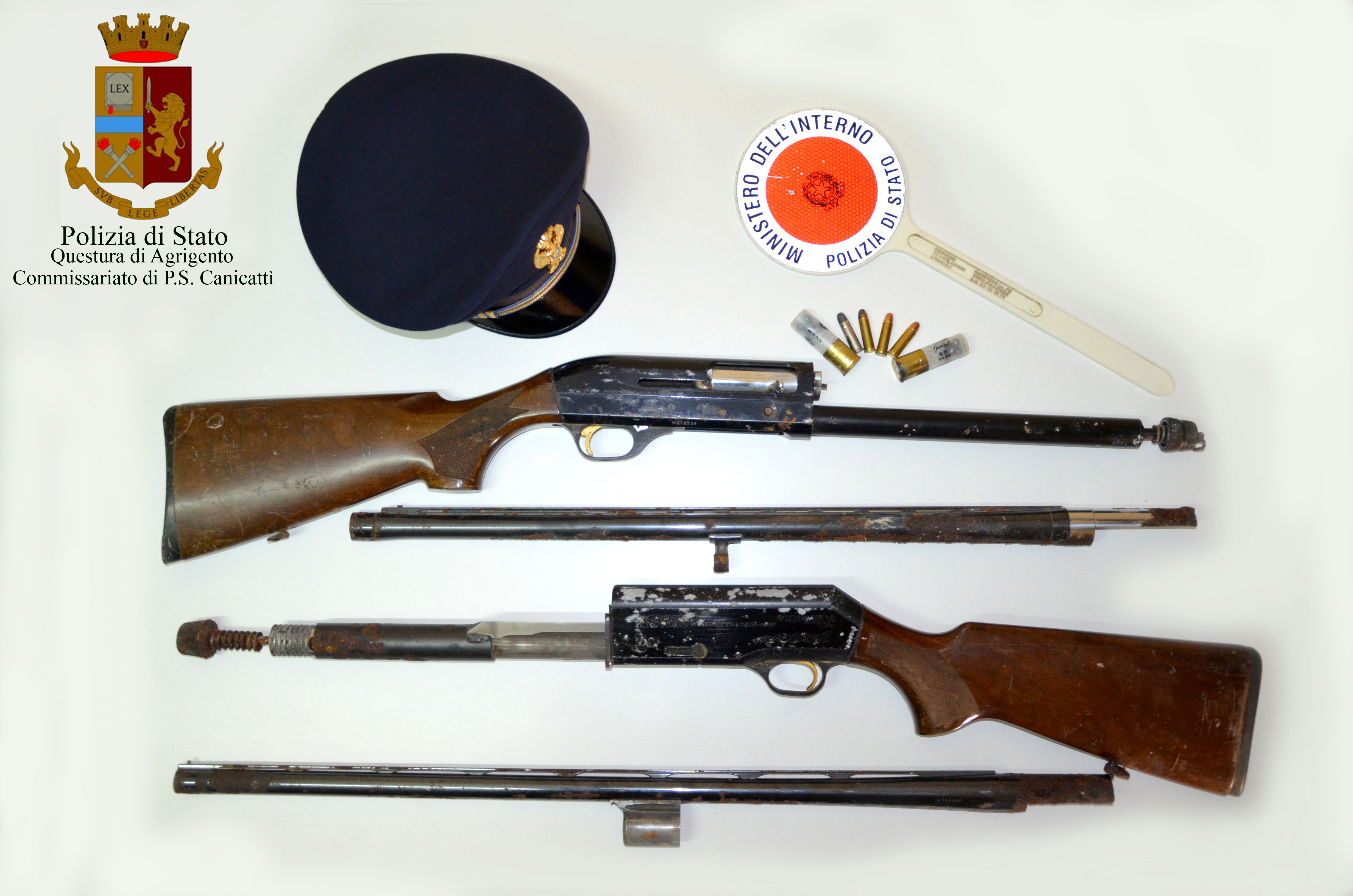 CANICATTÌ. Due fucili, calibro 12, due canne di fucile ed una ventina di proiettili calibro 38 sono stati trovati dagli agenti del commissariato di pubblica sicurezza di Canicattì, coordinati dal dirigente Cesare Castelli, all’interno di una grotta che si trova nelle campagne di contrada Buccheri alla periferia della città.