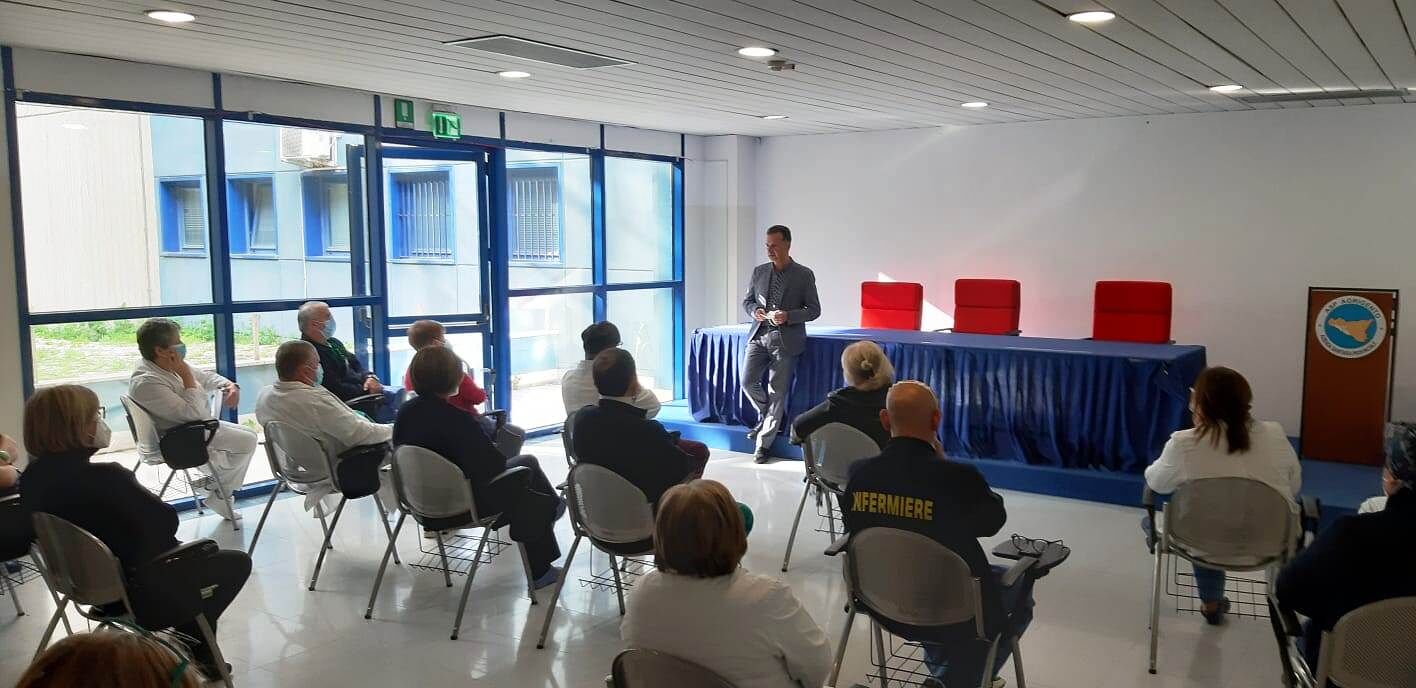 AGRIGENTO. E’ stato accolto con soddisfazione dal personale infermieristico il primo degli incontri che il commissario straordinario ASP, Mario Zappia, ha voluto indire questa mattina presso il presidio ospedaliero “San Giovanni di Dio” di Agrigento per discutere di diverse strategie operative utili a fronteggiare l’emergenza epidemiologica in corso. Non solo un’occasione di confronto su temi complessi come dotazione organica e risorse strumentali sono stati al centro del dialogo con chi opera in prima linea, ma anche temi di indiscussa centralità come la necessità di implementare il processo di umanizzazione delle cure appannaggio dei pazienti ospedalieri che vivono in “isolamento forzato” a causa del covid-19 e, più in generale, per i degenti dei vari reparti che, in conseguenza delle restrizioni in corso, sono lontani dagli affetti familiari.