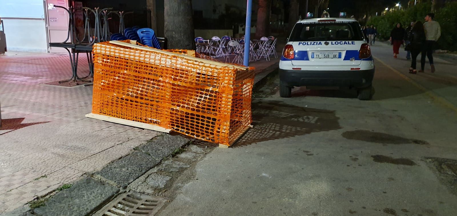 Sul lungomare di San Leone è stato segnalato il danneggiamento del marciapiede ad opera del proprietario di un autocisterna che è spofondata spaccando la passeggiata a causa del peso. Gli agenti della polizia municipale hanno avviato le ricerche per risalire al titolare del mezzo.