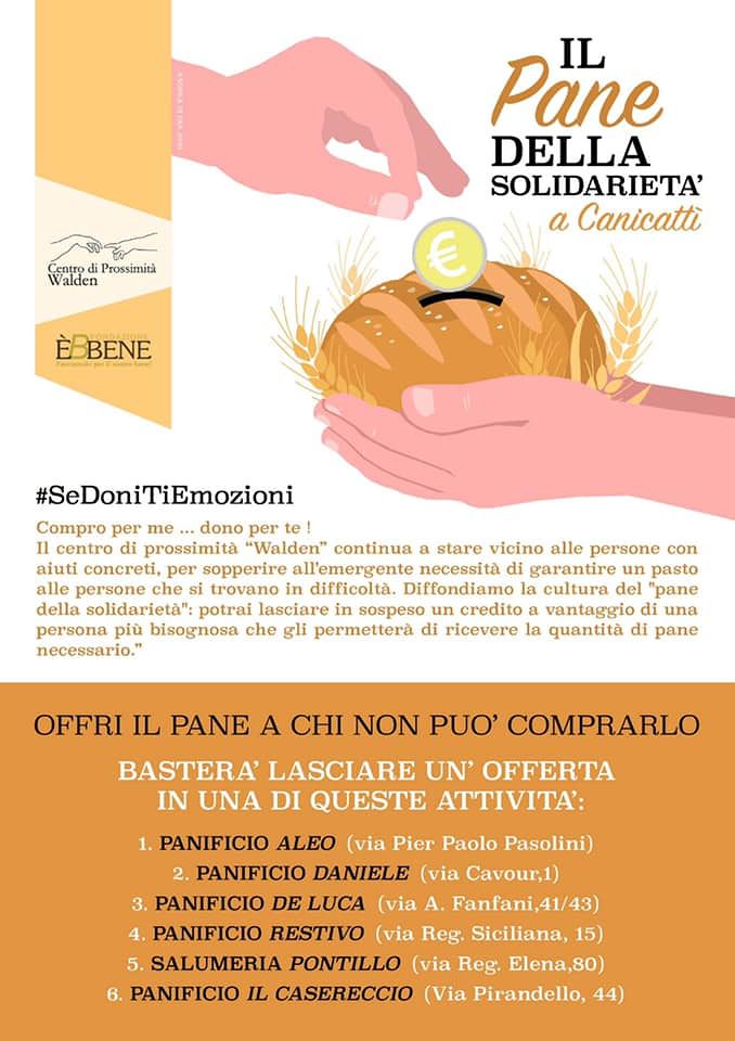 In concreto, i clienti potranno a iniziare a lasciare, già pagati, prodotti nei panifici in elenco, a disposizione di che ne ha più bisogno, compiendo un gesto solidale, per “combattere la fame”. Anche a Canicattì, si può puntare a creare una “filiera della solidarietà”.