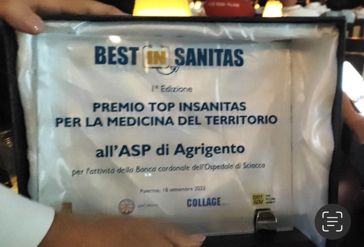 La banca del sangue cordonale del presidio ospedaliero “Giovanni Paolo II” di Sciacca, diretta dal dottor Pasquale Gallerano, ha conquistato il premio regionale “Top InSanitas” per la categoria “medicina del territorio”. Il prestigioso riconoscimento è stato conferito ieri sera a Palermo presso il teatro Santa Cecilia nell’ambito del premio “Best InSanitas”, l’evento in prima edizione che l’Associazione InSanitas, editrice dell’omonima, prestigiosa testata giornalistica, ha ideato in collaborazione con l’Assessorato regionale alla Salute per rendere merito alle eccellenze in campo sanitario sul territorio siciliano. La conquista del primo posto di categoria rappresenta un significativo riconoscimento per la qualità delle attività prodotte dalla struttura saccense e, più in generale, per l’Azienda Sanitaria Provinciale di Agrigento nella sua interezza. Estremamente lusinghiero il testo della motivazione della scelta della giuria specialistica: “il premio è dato per l’efficienza mostrata dalla banca del sangue cordonale di Sciacca nella riduzione degli sprechi attraverso l’utilizzo di emocomponenti non utilizzabili ai fini del trapianto del midollo per produrre gel e colliri utilizzati per il trattamento di patologie che necessitano di terapie rigenerative”. Per la stessa categoria la banca saccense si è confrontata in finale con l’ASP di Catania “per il modello di integrazione ospedale-territorio al PTA San Luigi”, Sanità Futura “per le attività laboratoriali nel 2021” e con l’ospedale Cannizzaro di Catania “per la caratterizzazione della vasculopatia arteriosa dei pazienti con sclerodermia”. A tutta l’equipe della banca del sangue cordonale del “Giovanni Paolo II” di Sciacca le vive congratulazioni della direzione aziendale.