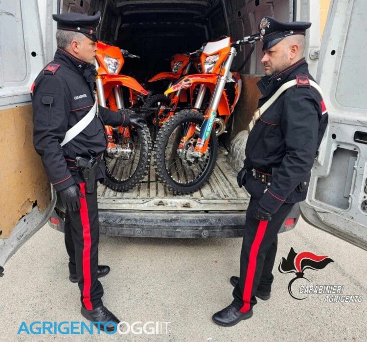 Una banda di ladri ha saccheggiato una concessionaria di moto. Ma a distanza di pochi minuti dal maxi “colpo” i malviventi, a bordo di alcuni furgoni, sono stati intercettati dalle pattuglie dei carabinieri del Comando provinciale di Agrigento. Ne è scaturito un inseguimento terminato lungo la strada per Siculiana. Sette persone, cinque delle quali palermitane, un menfitano e un trapanese, di età compresa tra i 17 e 60 anni, sono state bloccate e arrestate, ritenute responsabili del furto di sei motocicli.